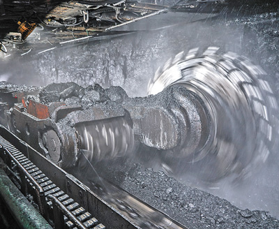 開采 內(nèi)蒙古自治區(qū)鄂爾多斯市 布爾臺(tái)煤礦綜采工作面,機(jī)器在開足馬力生產(chǎn)。
