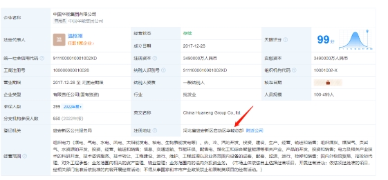 此外,華能集團的工商信息注冊地址已變更為“河北省雄安新區(qū)啟動區(qū)華能總部”。
