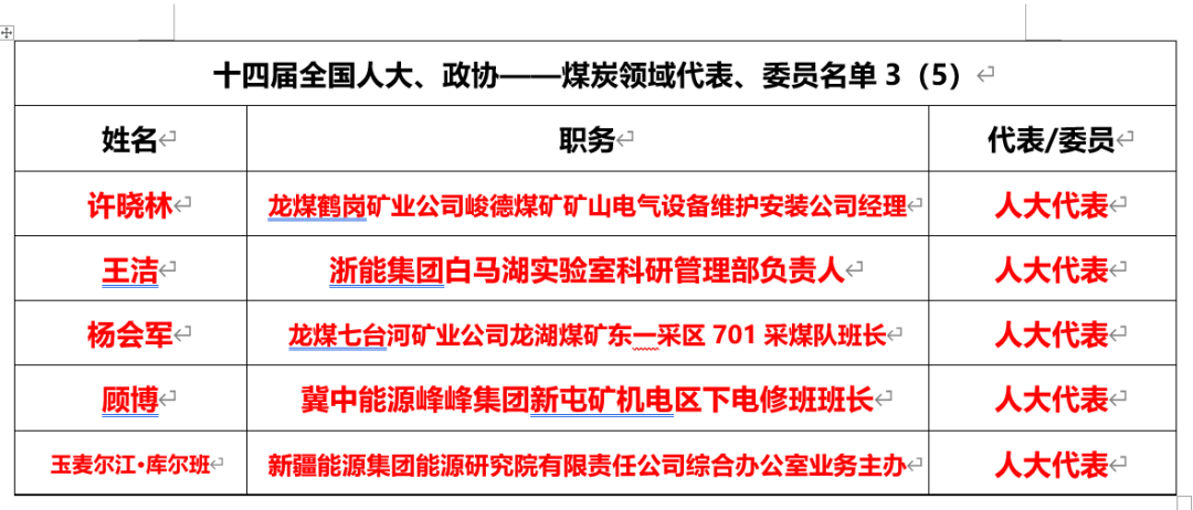 煤炭領(lǐng)域有25人當(dāng)選十四屆全國(guó)人大代表、政協(xié)委員,全國(guó)人大代表有19名,全國(guó)政協(xié)委員有6名。