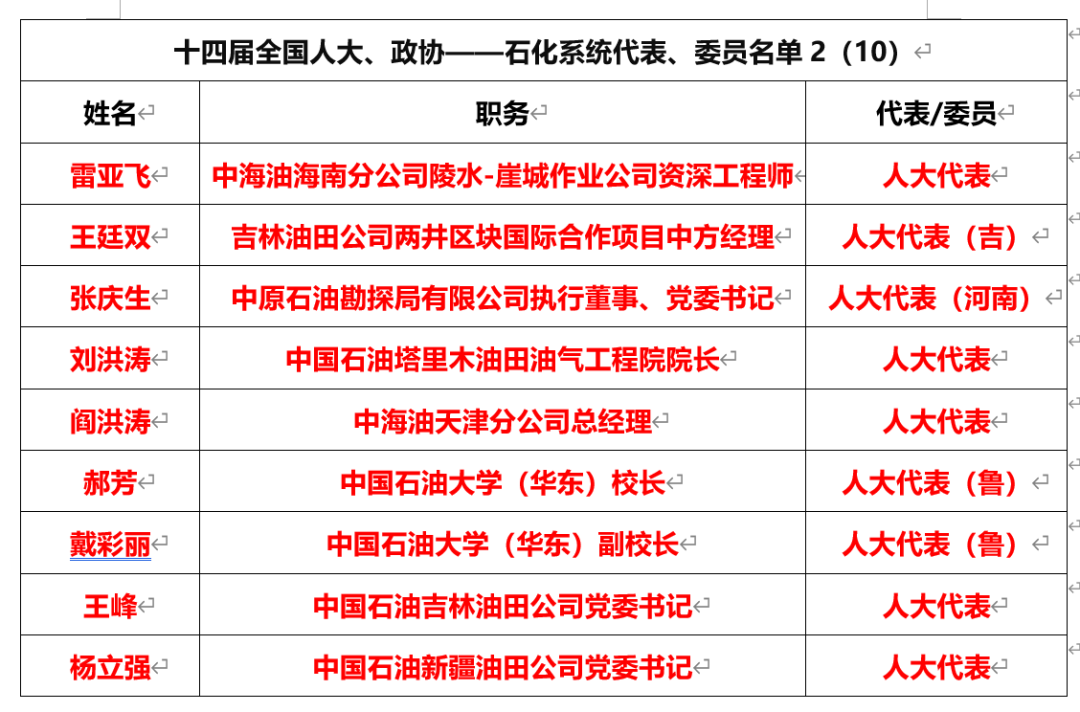 (二)中國(guó)石油(15名,委員1,代表14)