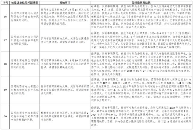 針對群眾反映的投訴舉報,國家能源局派出機構(gòu)嚴格根據(jù)國家有關(guān)法規(guī)政策規(guī)定進行處理。一是督促供電企業(yè)加強臺區(qū)等設(shè)備改造力度,縮短供電半徑,提高電網(wǎng)轉(zhuǎn)供、互供能力,解決故障停電、低電壓等電能質(zhì)量問題;二是要求供電企業(yè)加強設(shè)備隱患排查整治、停電搶修管理,加大線路巡視頻次,及時消除隱患缺陷,增加搶修資源投入,提升設(shè)備管控和停電搶修能力,切實提高供電質(zhì)量;三是通過行政處罰、監(jiān)管約談、責令整改等方式,糾正有關(guān)企業(yè)違法違規(guī)行為,維護公平公正的市場秩序和群眾合法權(quán)益;四是通過解釋說明、澄清事實,消除群眾誤解。(2024年7月12398熱線典型投訴舉報事項具體處理情況,見附件2)