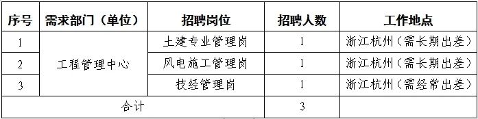 現(xiàn)根據(jù)工作需要面向國家電投系統(tǒng)內(nèi)招聘工程管理中心工作人員3名,有關事項公告如下:
