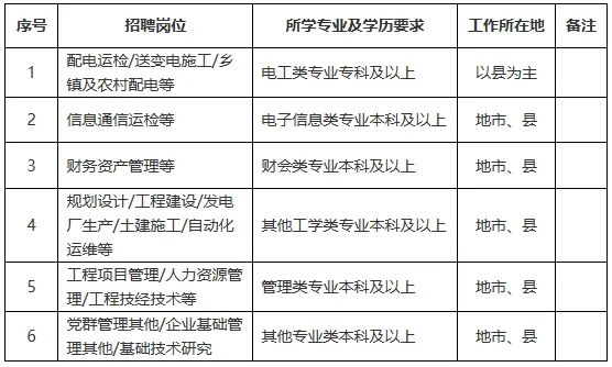 (二)招聘崗位:規(guī)劃、建設(shè)、運(yùn)?、運(yùn)維檢修、營(yíng)銷、信息通信、物資和培訓(xùn)教育等專業(yè)?線崗位。