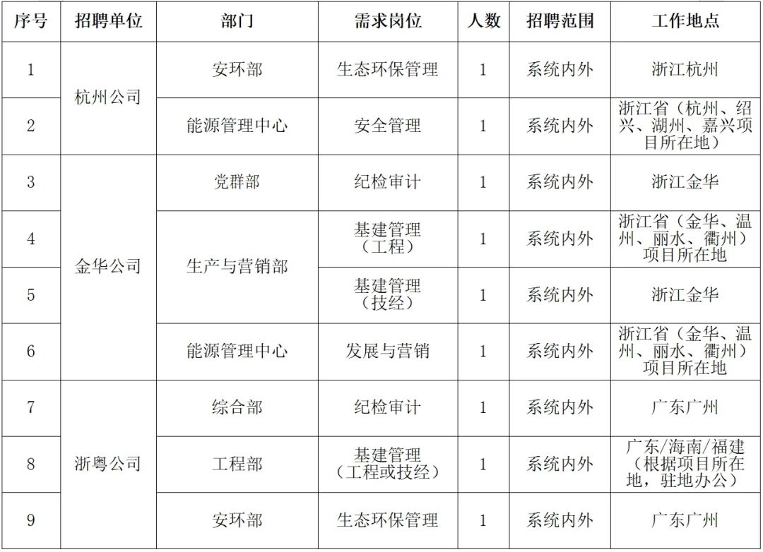 詳見(jiàn)《國(guó)家電投集團(tuán)浙江公司招聘崗位職責(zé)及任職條件》(附件1)。