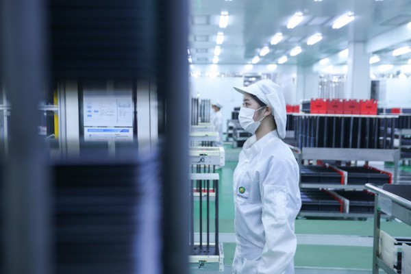 正泰新能源海寧工廠,工人正在進(jìn)行光伏組件EL檢測(cè)工序