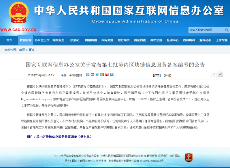 3月4日,國家互聯(lián)網(wǎng)信息辦公室(簡稱:國家網(wǎng)信辦)發(fā)布了《關于發(fā)布第七批境內(nèi)區(qū)塊鏈信息服務備案編號的公告》,遠光軟件兩款區(qū)塊鏈產(chǎn)品成功通過備案,為國內(nèi)已獲得國家區(qū)塊鏈信息服務備案數(shù)最多的企業(yè)之一。