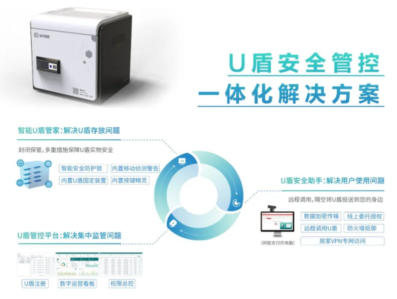 遠(yuǎn)光智能U盾管家通過運(yùn)用“人工智能+物聯(lián)網(wǎng)”技術(shù),以軟硬一體化的形式打造U盾安全管控一體化解決方案,對企業(yè)各類銀行U盾進(jìn)行封閉保管、線上授權(quán)、安全認(rèn)證、遠(yuǎn)程調(diào)用、實(shí)時監(jiān)控、追蹤及統(tǒng)計(jì),實(shí)現(xiàn)了企業(yè)U盾“存放-使用-簽退-存放”全鏈路的線上閉環(huán)管理,從而提升了U盾的保管、使用及操作的安全性,為企業(yè)安全保駕護(hù)航。