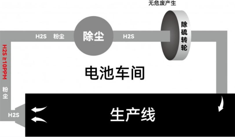 全固態(tài)電池對生產(chǎn)環(huán)境要求極高,如硫化物路線對濕度、氧氣極度敏感,遇濕即釋放毒氣——硫化氫(H?S),且易爆炸。這對生產(chǎn)線環(huán)境提出極高要求,且如何安全、環(huán)保、高效處理硫化氫氣體已成為全行業(yè)挑戰(zhàn)。