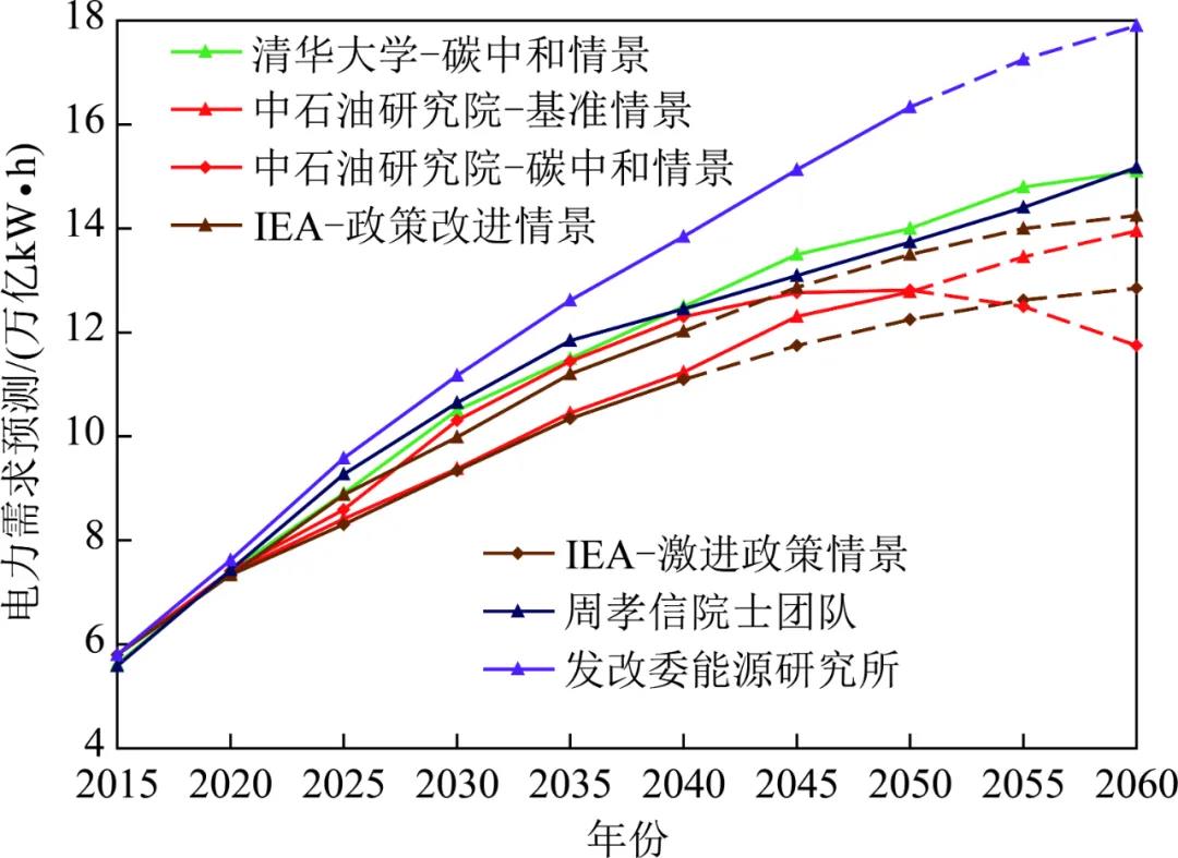 ▲不同研究機(jī)構(gòu)對(duì)我電力需求的預(yù)測(cè)