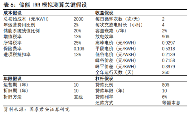 國(guó)內(nèi)用電側(cè)儲(chǔ)能經(jīng)濟(jì)性已現(xiàn)。我們以10MW/40MWh儲(chǔ)能系統(tǒng)為例進(jìn)行測(cè)算,在未考慮稅收優(yōu)惠時(shí),儲(chǔ)能IRR達(dá)8.60%,在考慮稅收優(yōu)惠的情況下IRR已達(dá)10.46%。