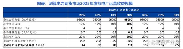 測算得到,通過電力現(xiàn)貨市場獲利模式下,當(dāng)虛擬電廠運(yùn)營商分成比例為50%時(shí),虛擬電廠2025年運(yùn)營市場規(guī)模為111億元。