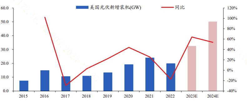 圖:2024年美國光伏裝機(jī)可達(dá)45-55GW,同比增長38%-69% (信息來源:華創(chuàng)證券)