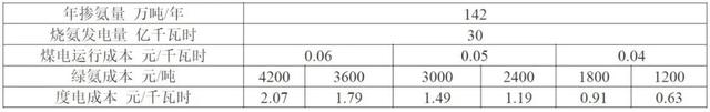 假設(shè)實(shí)現(xiàn)約70%的摻氨比例,經(jīng)計(jì)算每年需氨量約1440萬(wàn)噸,制氨用電量約1300億千瓦時(shí)。則制氨所需風(fēng)電裝機(jī)約2100萬(wàn)千瓦、光伏裝機(jī)約4200萬(wàn)千瓦、制氫+合成氨裝置約3250萬(wàn)千瓦,建設(shè)管道7條,預(yù)計(jì)設(shè)備總投資為3760億元。經(jīng)測(cè)算火電摻燒氨帶來(lái)的全社會(huì)用電成本上升約0.044元/千瓦時(shí)。