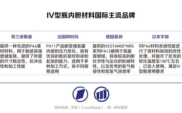 當(dāng)前國(guó)內(nèi)Ⅳ型儲(chǔ)氫瓶?jī)?nèi)膽材料主要由國(guó)外企業(yè)供應(yīng),包括日本宇部興產(chǎn)、荷蘭帝斯曼、美國(guó)杜邦(塞拉尼斯)、法國(guó)阿科瑪?shù)?,成本較高,是下一階段國(guó)產(chǎn)化突破的重點(diǎn)。