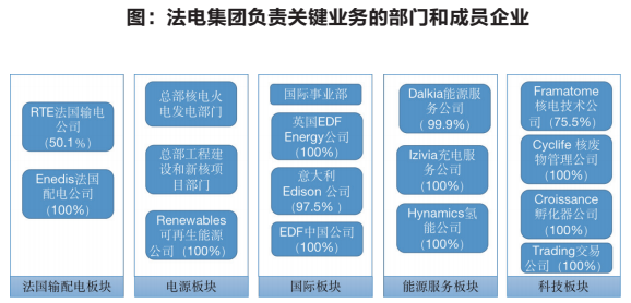 戰(zhàn)略決定組織變革,組織支撐戰(zhàn)略落地。目前法電負責關鍵業(yè)務的成員企業(yè)和部門可以歸納為五大板塊,如下圖所示。