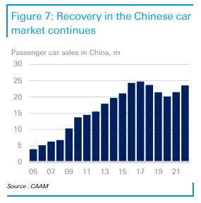 2022年,中國的汽車銷量超過了前兩年。與2021年相比,2022年中國乘用車銷量增長9.5%。從絕對值來看,中國乘用車銷量從2021年的2150萬輛增長到2350萬輛。因此,中國進(jìn)一步擴(kuò)大了其作為世界最大汽車市場的地位。盡管此前受到了疫情的影響,但2022年和2021年中國在產(chǎn)量方面仍實(shí)現(xiàn)了增長,這對生產(chǎn)和需求產(chǎn)生了一定影響,這一點(diǎn)值得注意。