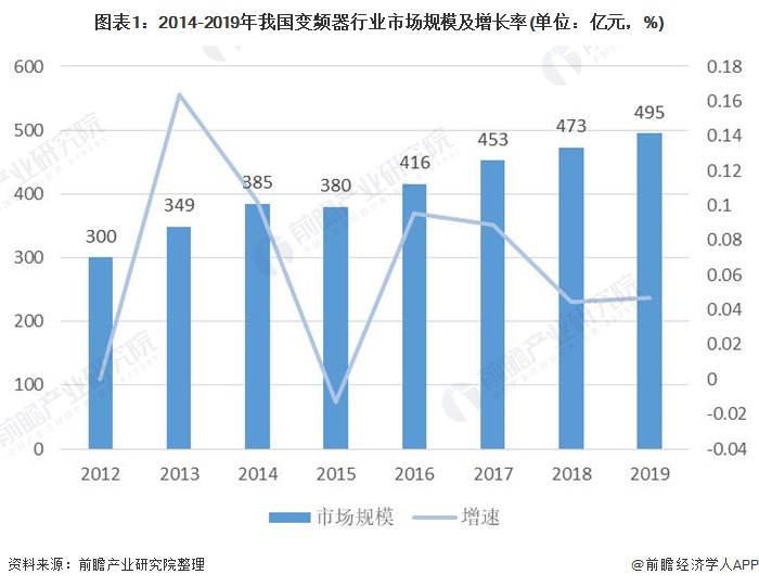 我國變頻器行業(yè)的市場(chǎng)規(guī)模整體呈上升態(tài)勢(shì),從2012年至2019年,中國變頻器行業(yè)規(guī)模除2015年有小幅度下降以外,其余年份均處于穩(wěn)步增長狀態(tài)。2019年我國變頻器行業(yè)的市場(chǎng)規(guī)模達(dá)到495億元,相比2018年增長4.7%。