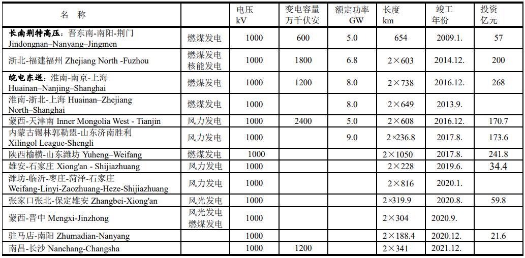 在建和待建的超高壓輸電線(xiàn)路