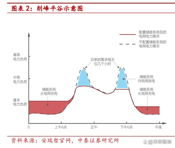 工商儲(chǔ)使用鋰電池等電化學(xué)儲(chǔ)能技術(shù),主要用于削峰平谷。儲(chǔ)能按設(shè) 備或項(xiàng)目接入位置可分為電源側(cè)、電網(wǎng)側(cè)及用戶側(cè)。工商業(yè)儲(chǔ)能是分布 式儲(chǔ)能系統(tǒng)在用戶側(cè)的典型應(yīng)用,其特點(diǎn)是距離分布式光伏電源端以及 負(fù)荷中心均較近,可有效提升清潔能源的消納率,減少電能的傳輸?shù)膿p 耗,適用于商業(yè)樓宇、工業(yè)園區(qū)等用電大戶。工商業(yè)儲(chǔ)能系統(tǒng)的主要目 的是“削峰平谷”,優(yōu)化電力資源配置和合理使用,并利用電網(wǎng)峰谷差 價(jià)實(shí)現(xiàn)套利。