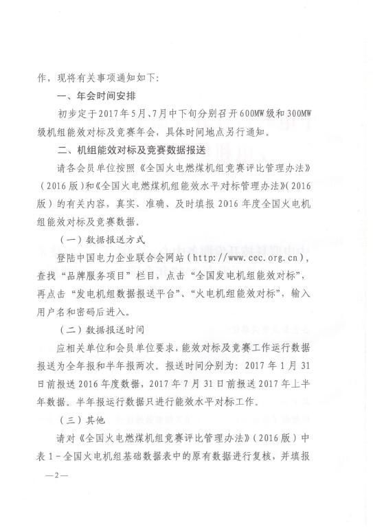 關(guān)于發(fā)布2017年全國火電燃煤機組能效對標及競賽工作安排的通知